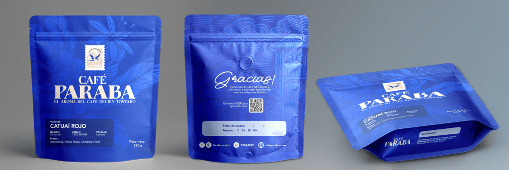 Diseñé una identidad visual centrada en la ilustración de la paraba, utilizándola como un símbolo de origen y biodiversidad boliviana. La estrategia consistió en usar una tipografía y composición que transmitan calidez y autenticidad, logrando que el cliente conecte con la causa ambiental mientras percibe la calidad del producto local.