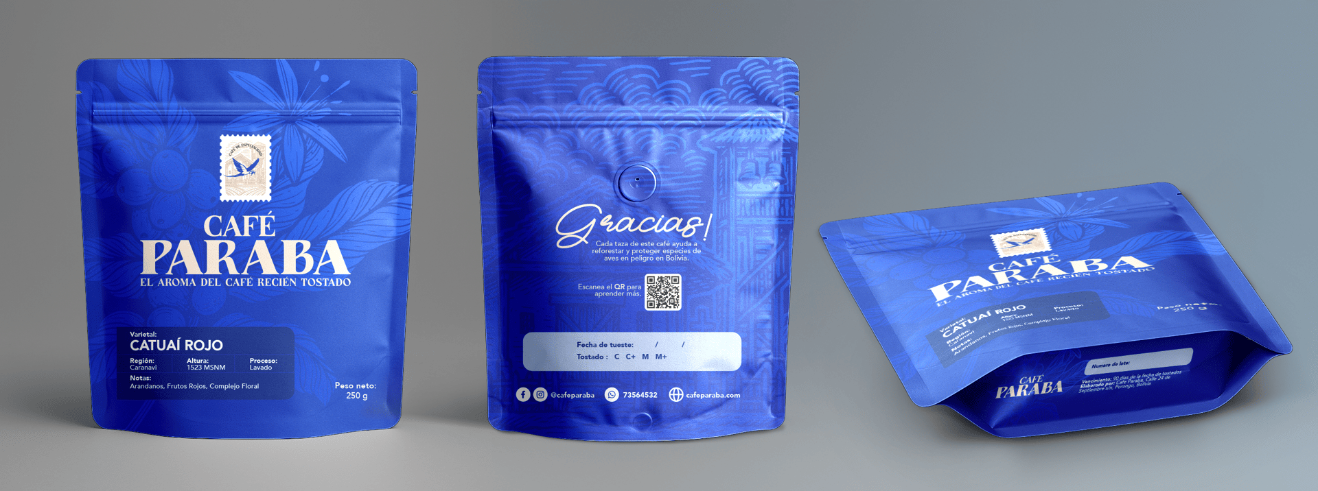 Diseñé una identidad visual centrada en la ilustración de la paraba, utilizándola como un símbolo de origen y biodiversidad boliviana. La estrategia consistió en usar una tipografía y composición que transmitan calidez y autenticidad, logrando que el cliente conecte con la causa ambiental mientras percibe la calidad del producto local.